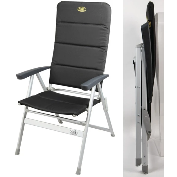 Gepolsterter Campingstuhl Grenoble DeLuxe mit silbernem Aluminiumgestell. Lieferung erfolgt ohne Packtasche.