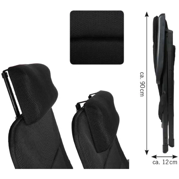 Der hochwertige Campingstuhl Malaga Breeze Plus mit luftigem 3D-Mesch-Gewebe und einem ausziehbaren Kopfteil. Damit können Sie die Höhe der Kopfstütze individuell einstellen und haben ein kleines Gewicht. Die Rückenlehne ist 7-fach verstellbar. Der edle Look wird durch das schwarze Aluminium-Gestell und die extra hohe Querstrebe für mehr Beinfreiheit vervollständigt. Mit der bequem gepolsterten Sitzfläche und Rückenlehne erleben Sie absoluten Komfort. Lieferung ohne Packtasche.