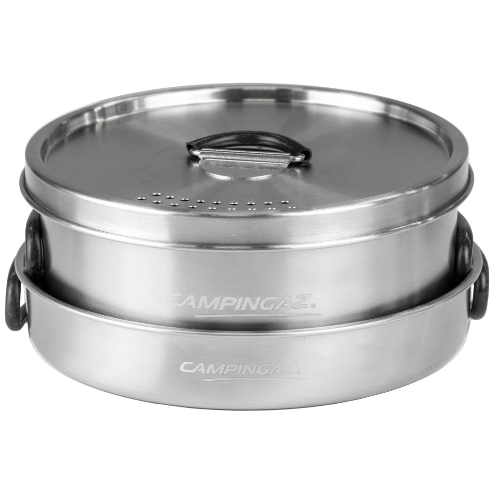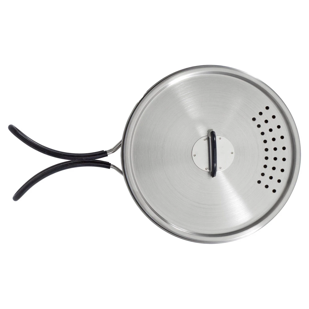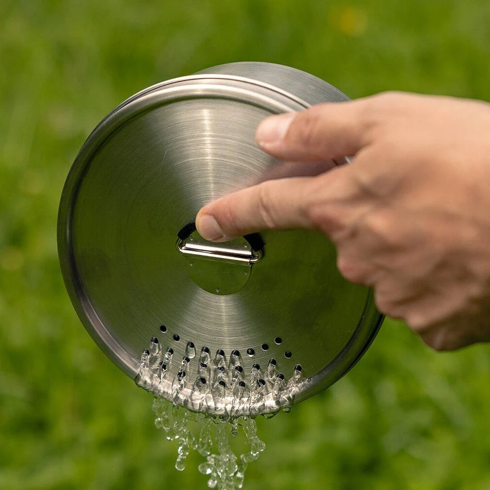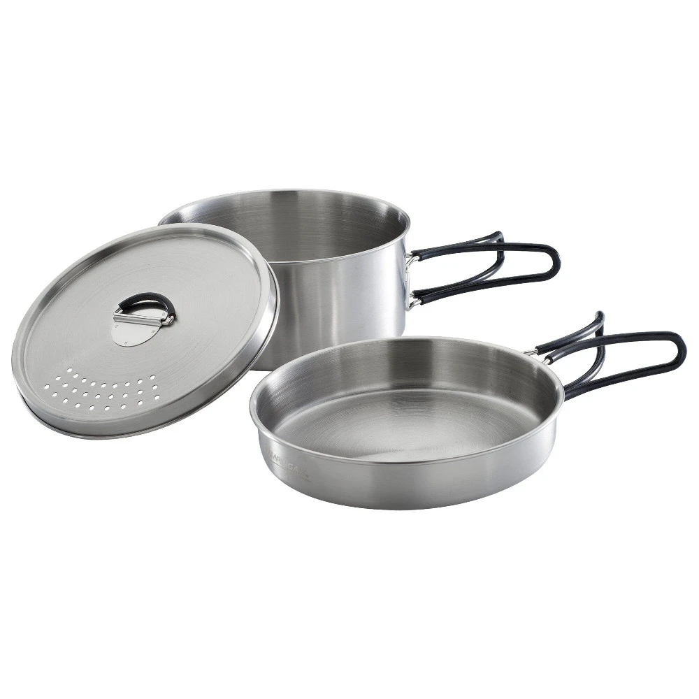 Entdecken Sie dieses erstklassige Camping-Geschirrset aus rostfreiem Edelstahl mit ergonomischen Silikongriffen. Es ist die ideale Wahl für kleinere Familien auf Ihrem nächsten Campingausflug, da es kompakt in seinen Abmessungen ist und sich zugleich mühelos reinigen lässt.