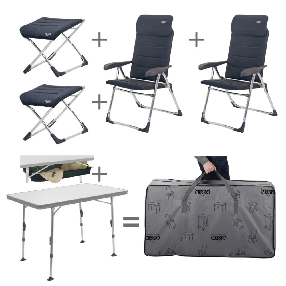 Das Crespo Stuhl- und Tischset Valencia gibt es in zwei Ausführungen. Das Set wurde speziell für kleinere Wohnmobile, Kastenwagen und Vans konzipiert.