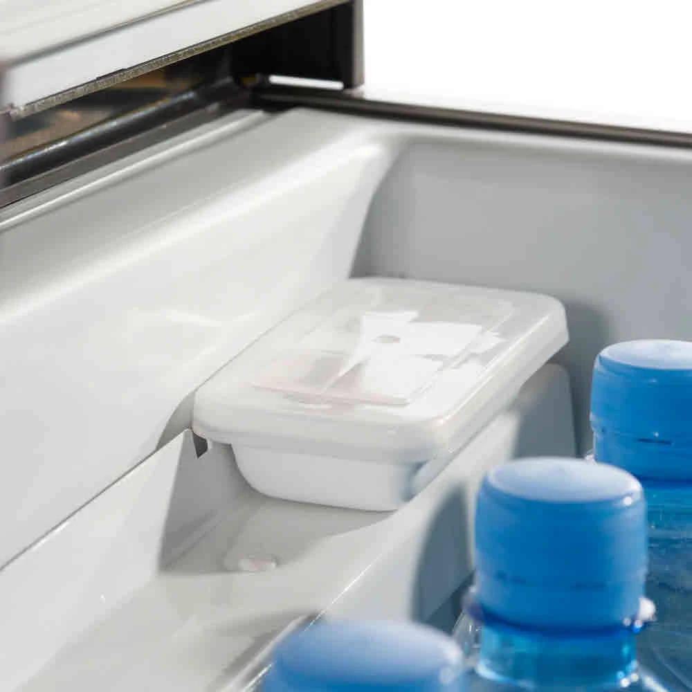 Die ACX3 Familie ist mit stabilem Aluminiumgehäuse mit Griffmulden und mit einem robusten Deckel ausgestattet, ein Eiswürfelbereiter ist im