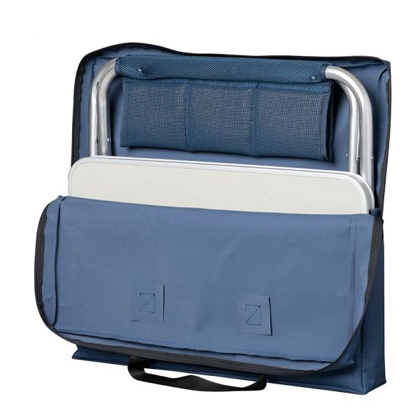 Verwandelt die Fußauflage Adagio mit einem Handgriff in einen praktischen Beistelltisch. Inklusive Tragetasche.