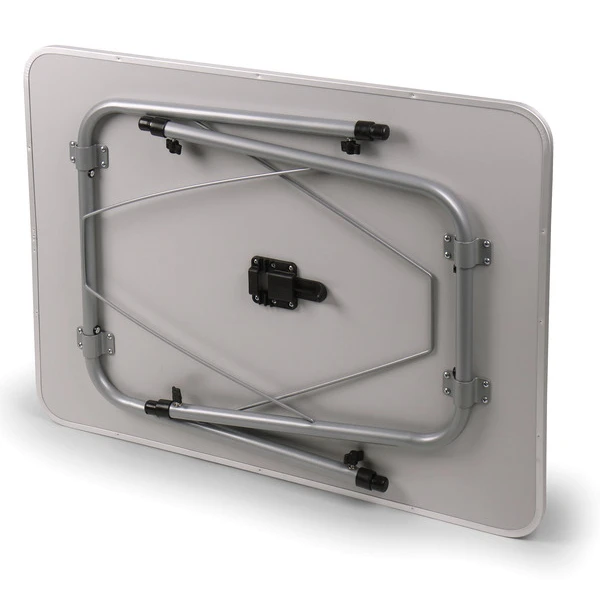 Leichter Campingtisch mit edler silberfarbener Aluminium-Tischkante mit stabiler MDF-Platte und robustem Stahlgestell.
