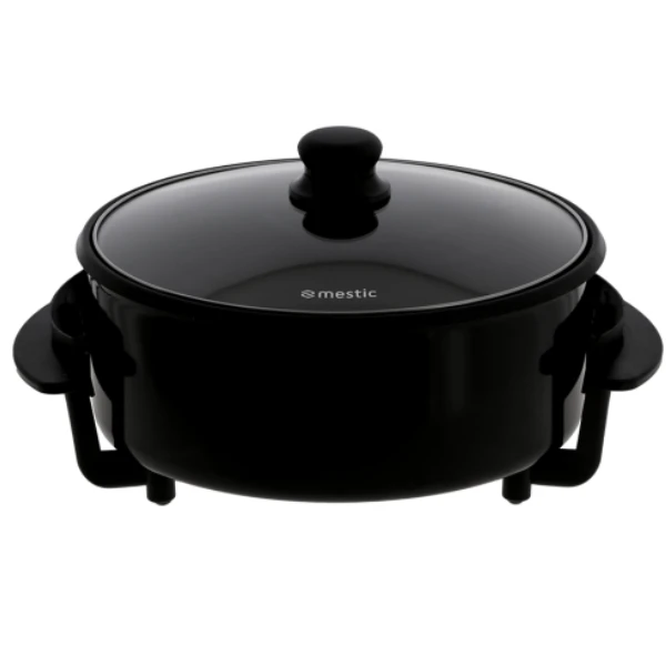 Doppelte Antihaftbeschichtung. Abnehmbares Netzkabel mit Thermostatknopf. Griff aus Kunststoff.