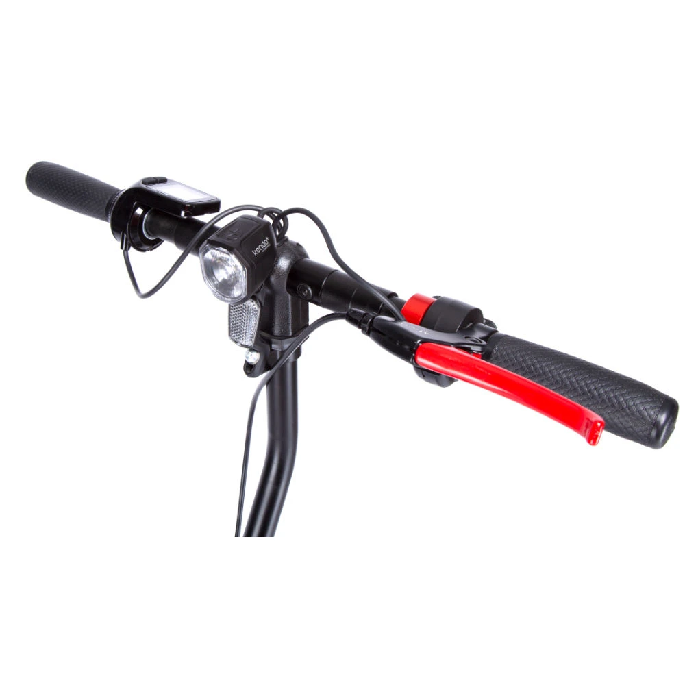 - Beleuchtung: starker LED Frontstrahler – weiß (StVO konform, Straßenzulassung), starker LED Rückstrahler- rot (StVO konform, Straßenzulassung)