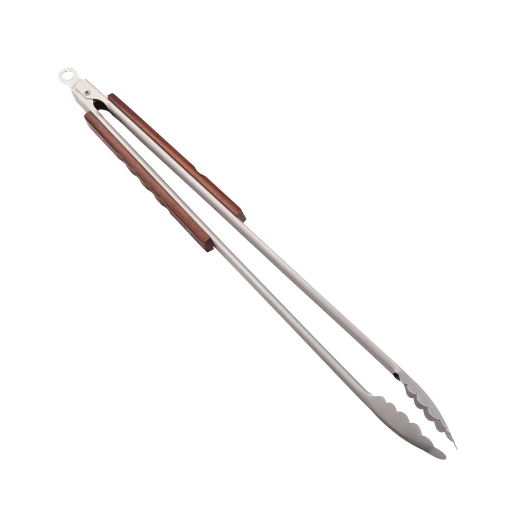 Eine gute Grillzange ist die Grundvoraussetzung für ein erfolgreiches Grillerlebnis. Unsere Premium Grillzange XXL aus Edelstahl hat mit 56 cm Länge einen optimalen Abstand zu Ihrem heißen Grill. Zudem lassen sich auch große Mengen Grillgut durch die sehr beliebte Kopfform dieser Zange leicht händeln. Der Holzgriff mit Fingereinlass beugt einem Abrutschen bei der Bedienung vor. Nach der Benutzung lässt sich die Premium Grillzange XXL leicht reinigen und anschließend zur platzsparenden Verstauung arretieren.